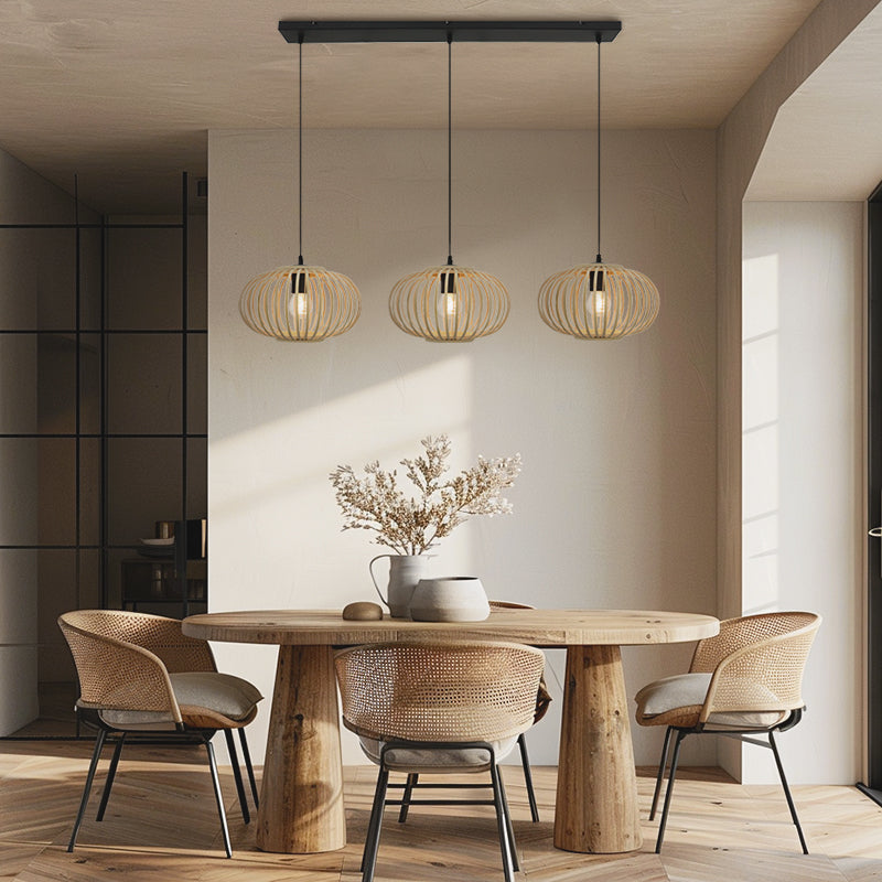 Denne brune pendellampe fra LIEVE-serien er lavet af rattan. Pendellampen har 3 E27 fatninger (lyspærer ekskluderet). Den maksimale effekt af denne lampe er 60W.
