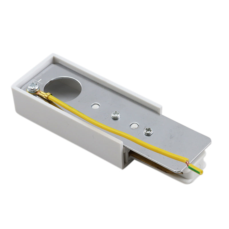 Dette hvide 1-fase sporbelysningsforbindelsesstykke er lavet af plastik.