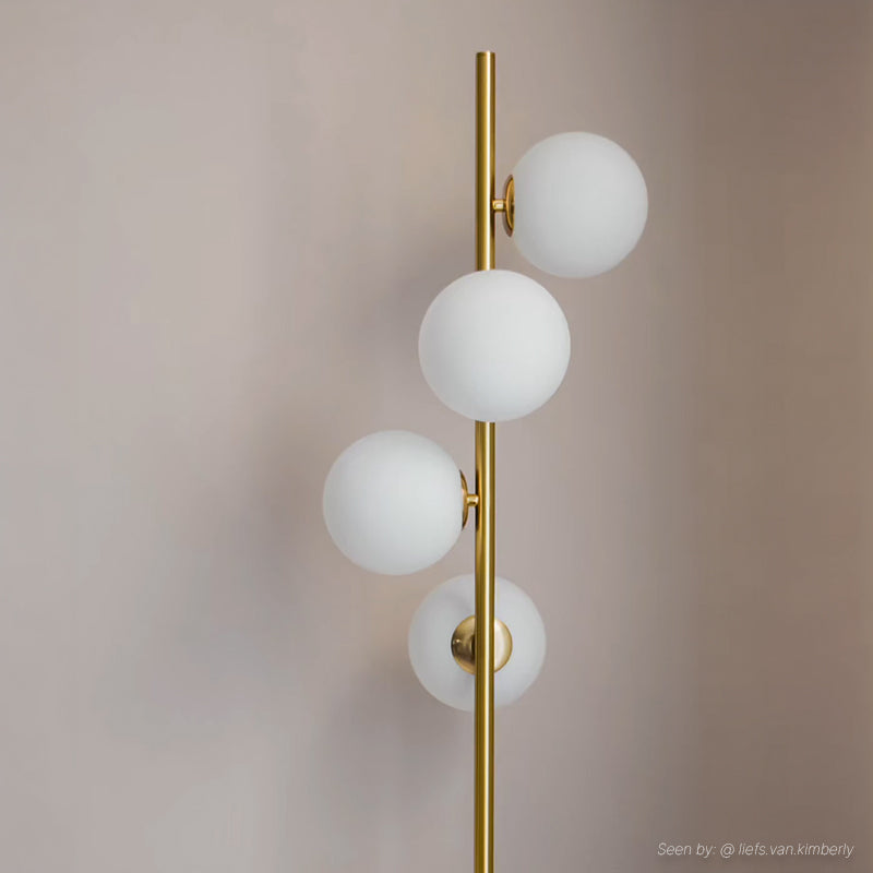 Denne messinggulvlampe fra REMO-serien er lavet af glas. Gulvlampen har 4 G9 fatninger (lyspærer ekskluderet). Den maksimale effekt for denne lampe er 25W.