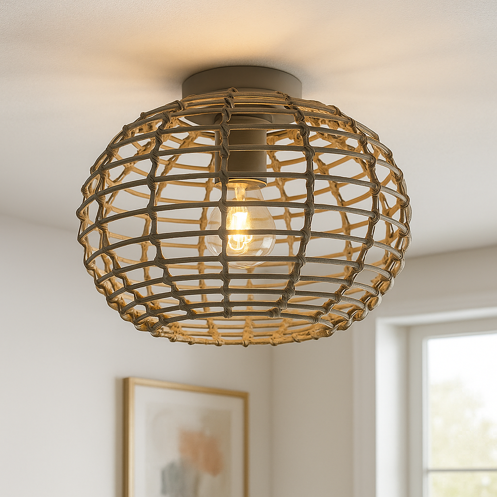 Denne grå loftlampe fra ROZA-serien er lavet af rattan. Loftlampen har 1 E27 fatning (pære ekskluderet). Den maksimale effekt af denne lampe er