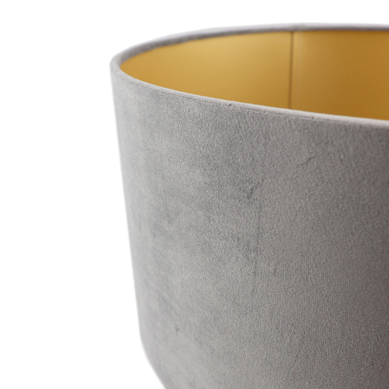 Esta pantalla de lámpara de terciopelo gris de la serie Madelyn está hecha de tela. La pantalla de terciopelo tiene 1 portalámparas E27 (bombilla excluida). La potencia máxima de esta lámpara es