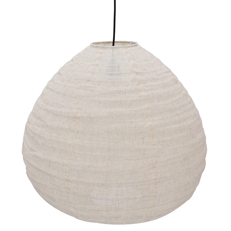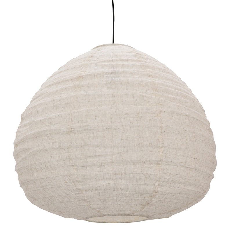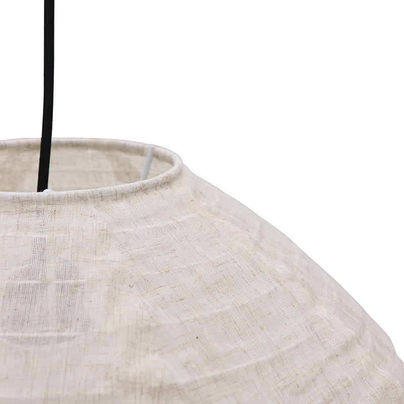 Serie LEILA is gemaakt van open linnenstof. Door dit materiaal en de kiezelvorm past deze lamp perfect binnen een wabisabi-interieur. Hoe langer de lamp hangt, hoe meer hij in vorm zal komen.