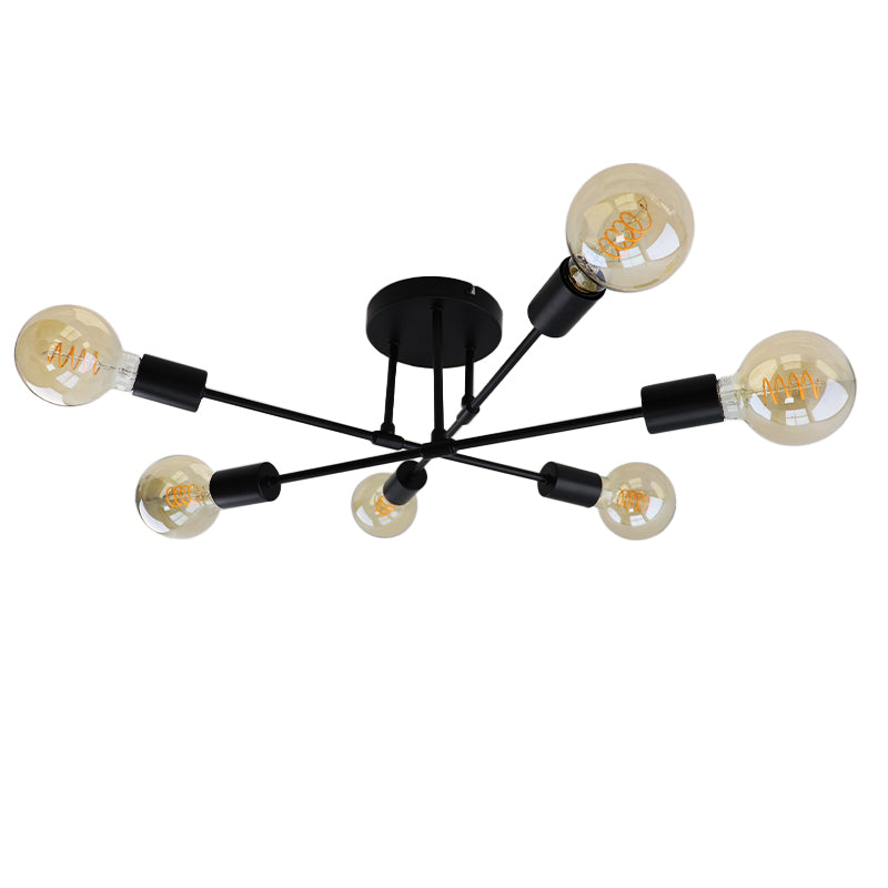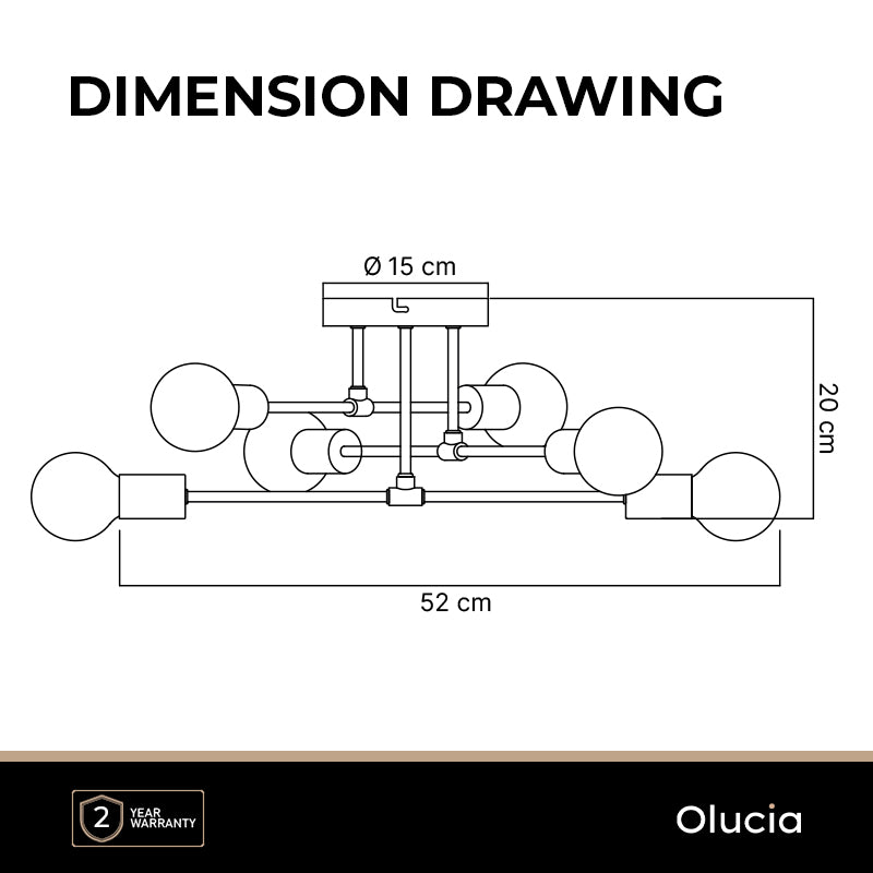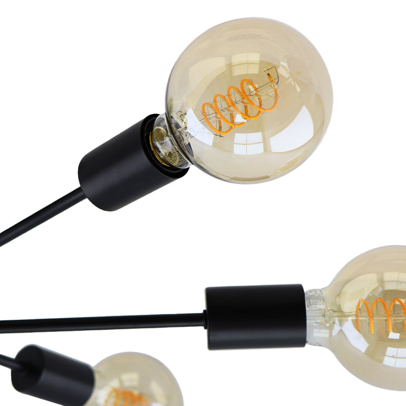Ta czarna lampa sufitowa z serii Amos jest wykonana z aluminium. Lampa sufitowa ma 6 gniazd E27 (żarówki nie są dołączone). Maksymalna moc tej lampy wynosi 30W.