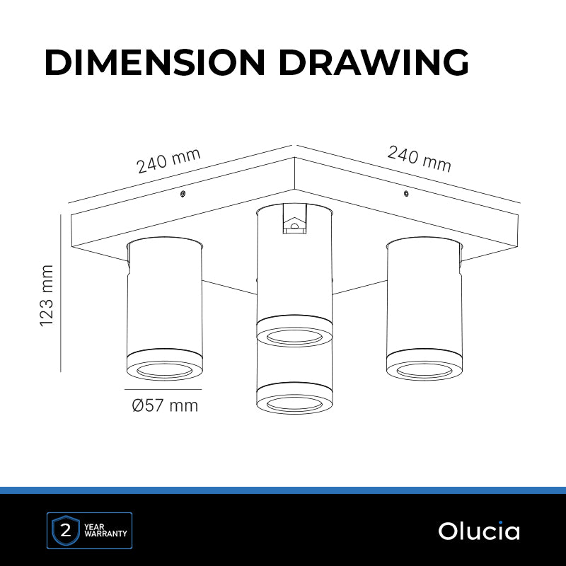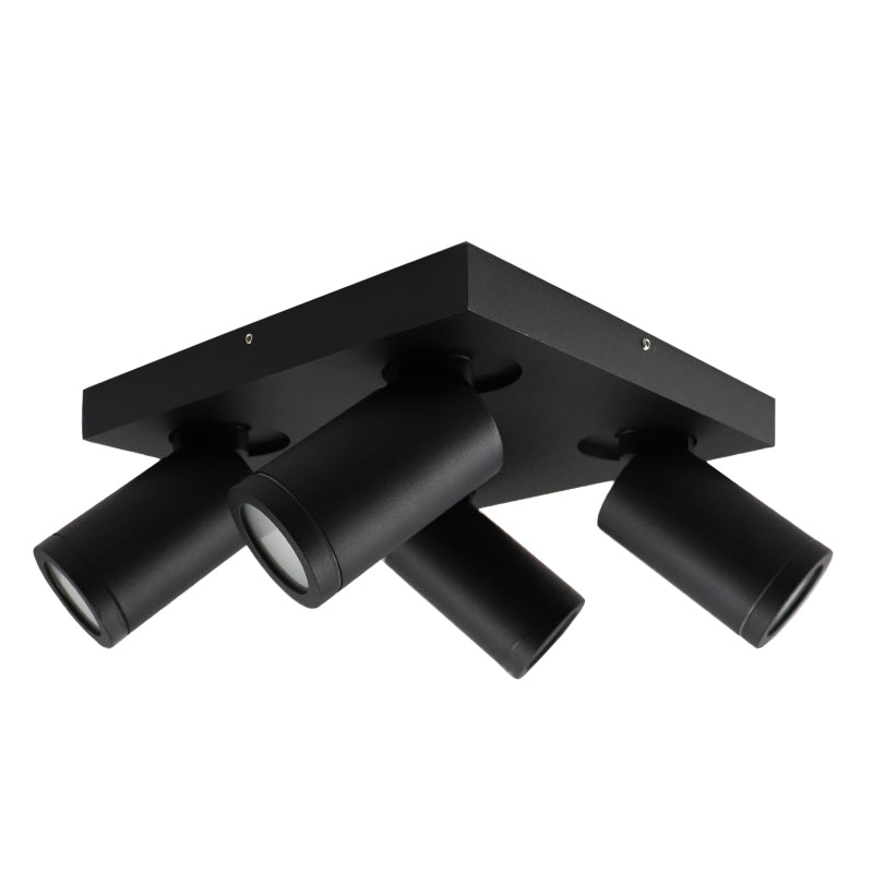 Denna svarta takspotlight från Kenan-serien är tillverkad av aluminium. Takspotlighten har 4 GU10-lampfästen (ljuskällor ingår ej). Den maximala effekten för denna lampa är 35W.